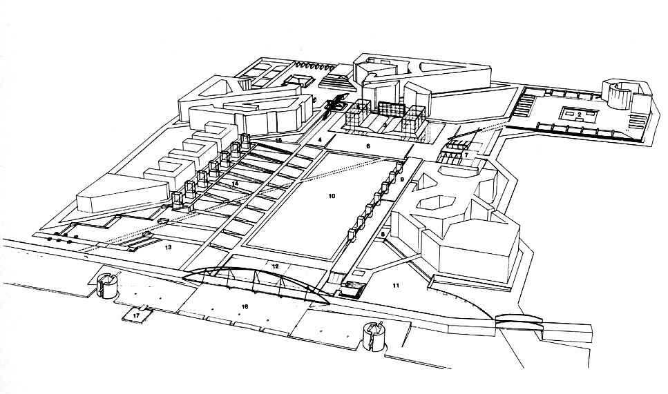 The two architectural groups that led it were headed by Alain Provost and Gilles Clement. Their collaboration relied on the basis of the common postmodern concept and was achieved by the delivery of an important postmodern project.