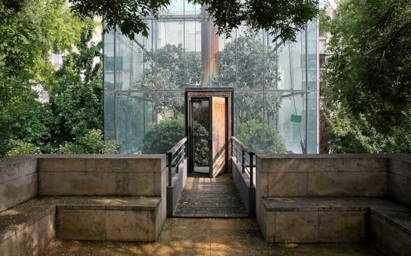 Still, towards the eastern side (SE), the two large glass greenhouses located on the level created after the slightly sloping paved surface, which separates the area of the main lawn from those, also give a relevance sense of the scale relation between park and the city section behind them.