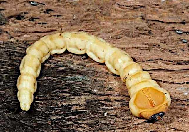 Κι αφού κάτι τέτοιο γίνει κατορθωτό, αμέσως μετά θα βρεθεί στην φάση της πλαγγόνας, όπου και θα διέλθει το νυμφικό στάδιο (χρυσαλλίδωση) στο ξύλο του λαιμό του δέντρου, εντός του θαλάμου νύμφωσης, μήκους περίπου 3 cm.