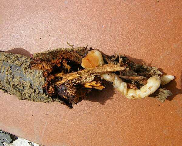 Η είσοδος των νεαρών προνυμφών στις ρίζες των οπωροφόρων σηματοδοτεί και την έναρξη της προσβολής. Οι προνύμφες ορύσσουν στοές οι οποίες φτάνουν μέχρι και το ξύλο των ξενιστών τους – ζημιές οι οποίες μπορούν να γίνουν ορατές με την αφαίρεση του φλοιού των ριζών και της περιοχής του λαιμού του δέντρου.